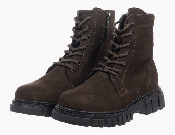 Сдержанный, но дерзкий вид ботинок сделает ваш образ собранным и смелым. Конструкция верха выполнена из тактильно приятного нубука, отлично защищает от холода и ветра. Внутренняя подкладка из байки сохраняет тепло и при этом пропускает воздух, позволяя коже дышать. Вкладная ортопедическая стелька мягко поддерживает своды и снимает нагрузку на суставы во время ходьбы. Фронтальная часть оснащена шнуровкой и молнией сбоку для ускорения надевания обуви. Формоустойчивый задник фиксирует задний отдел стопы и останавливает заваливание. Тракторная высокая подошва отлично защит от холода и придаст каждому шагу энергии и устойчивости. Наденьте их — и вы готовы преодолеть любые преграды.